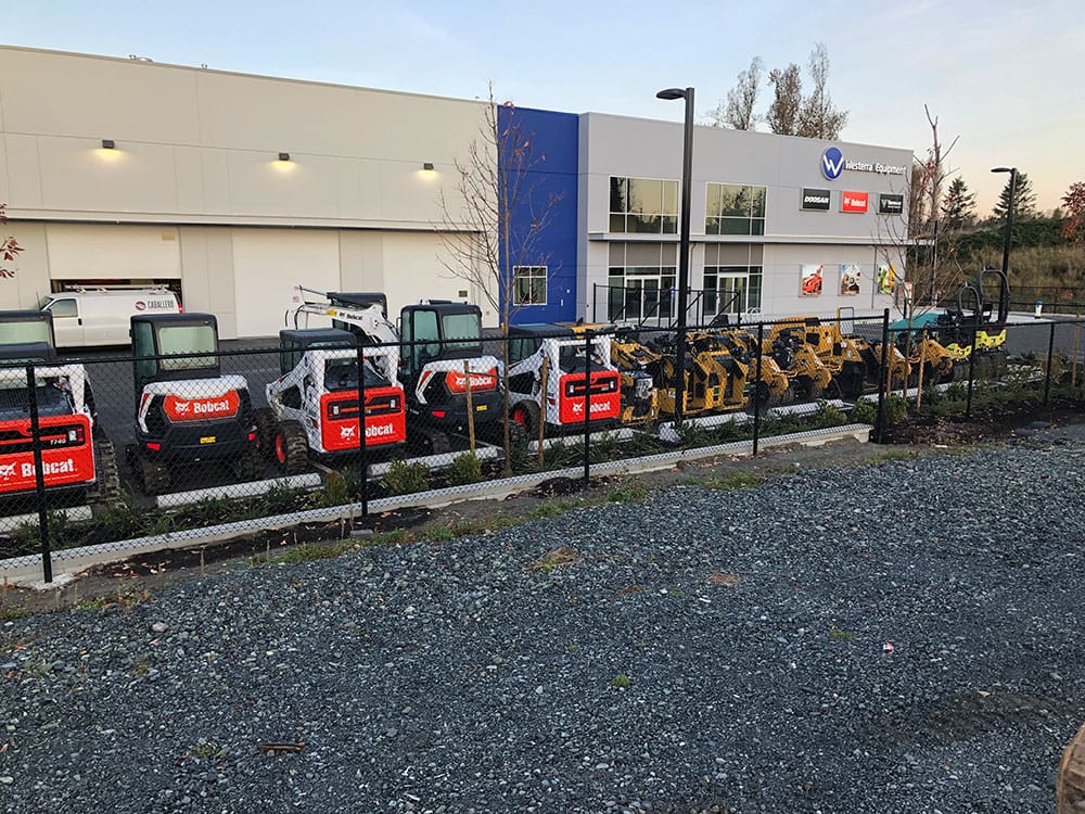Located on Mount Lehman Rd in Abbotsford BC, the commercial electrical installation project for Westerra Equipment included the construction of equipment storage, services area, office spaces, maintenance bays, as well as a sales space.